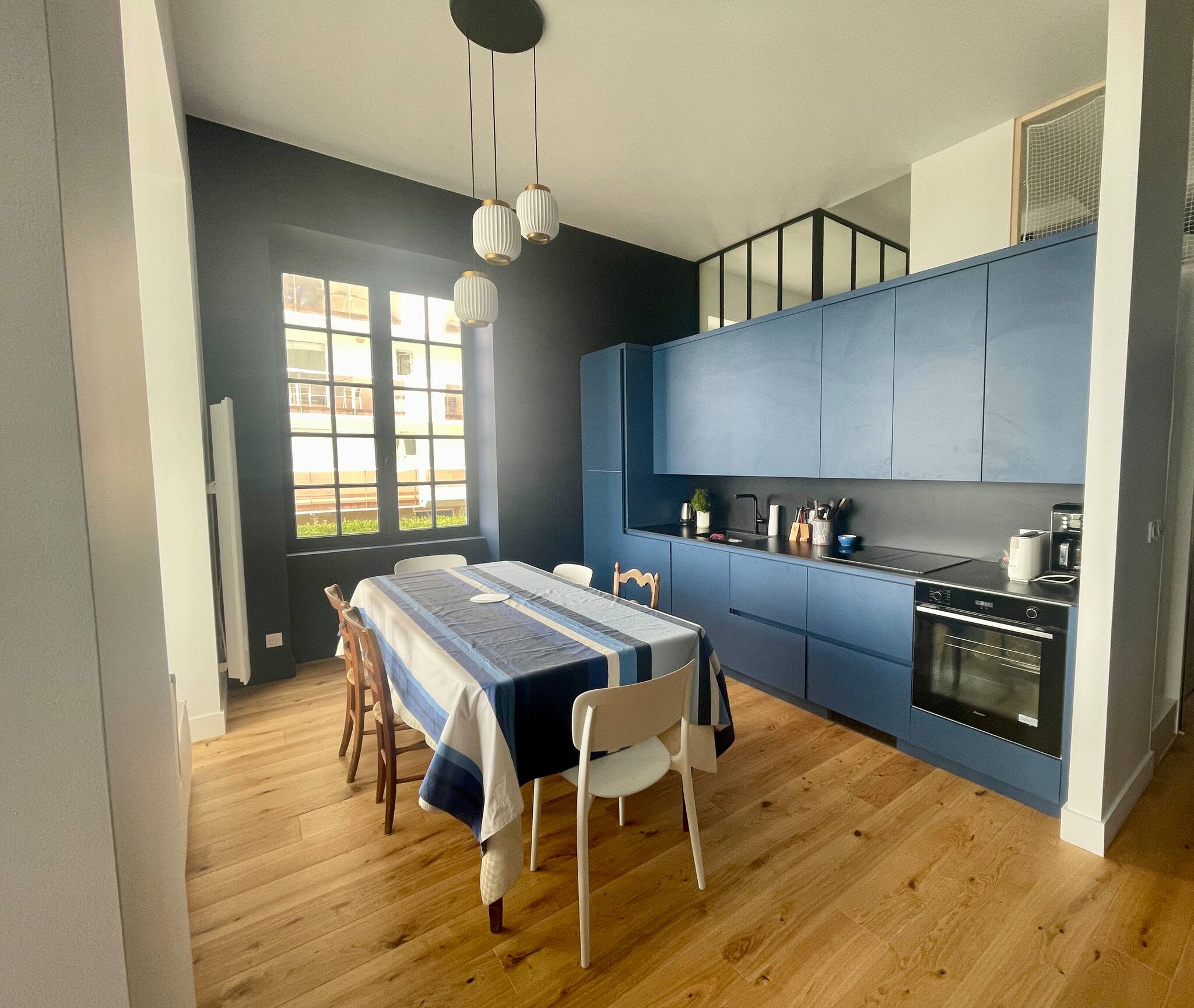 From the entrance of the accommodation you access the living area consisting of a fitted and equipped kitchen open to the living space overlooking Avenue Lajarrige.