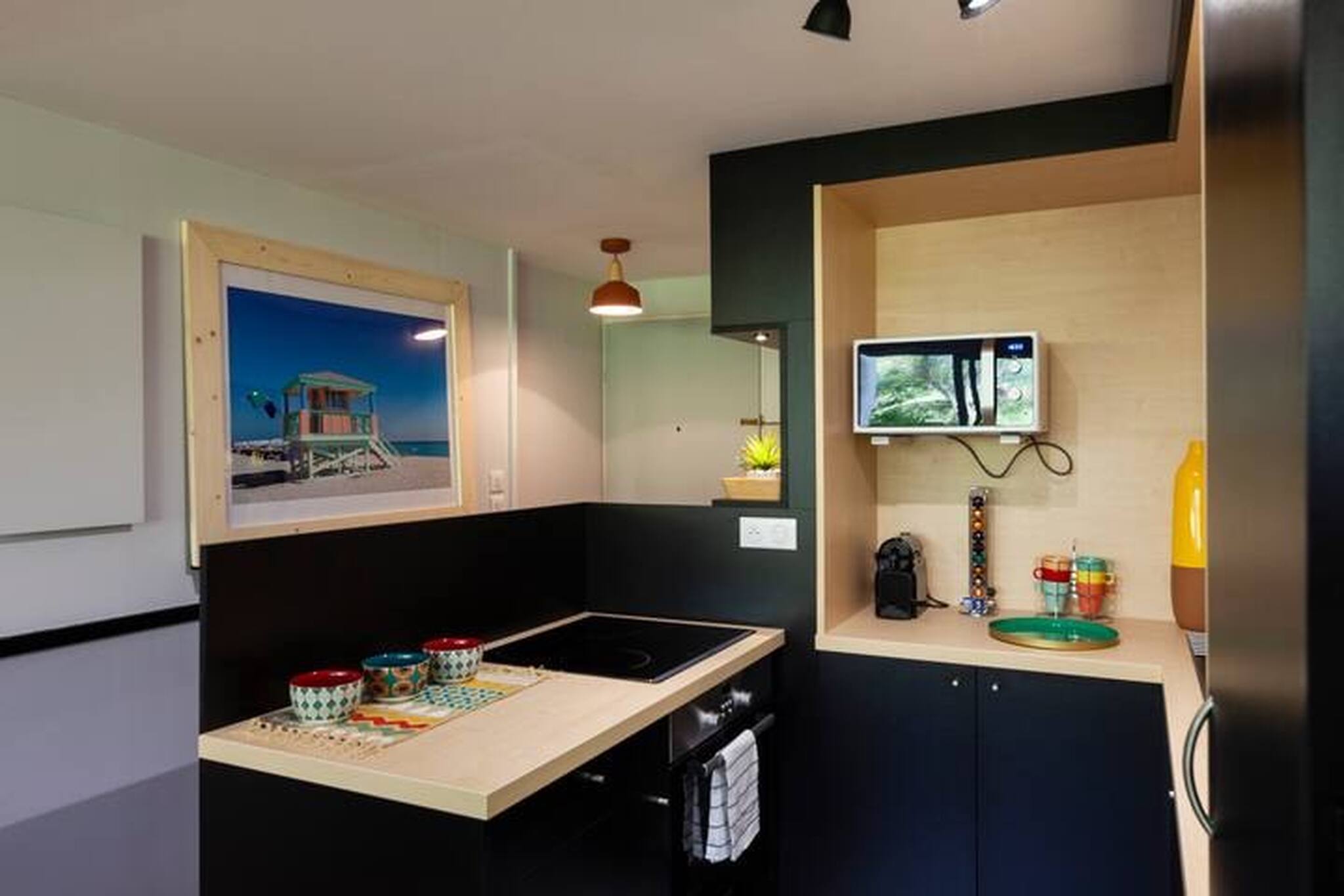 • A fully equipped kitchen: Nespresso coffee machine, refrigerator, oven, microwave, hob, extractor hood, kettle, filter coffee maker, toaster, dishwasher, washing machine, table and iron.
