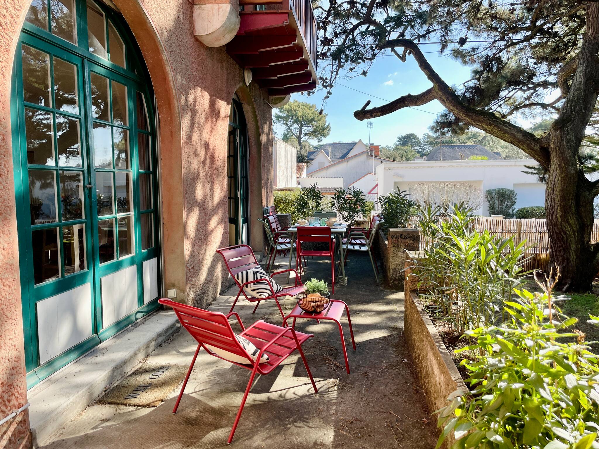 You have a large terrace at the front of the house and a small courtyard at the back.