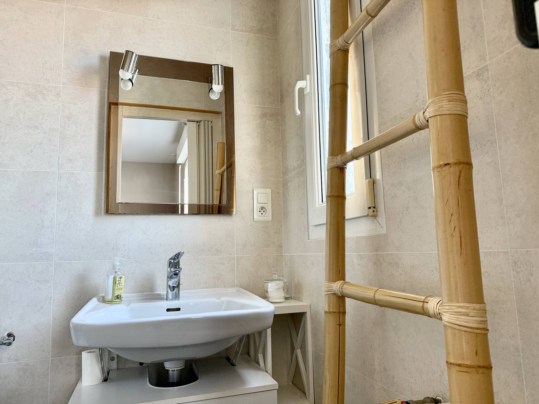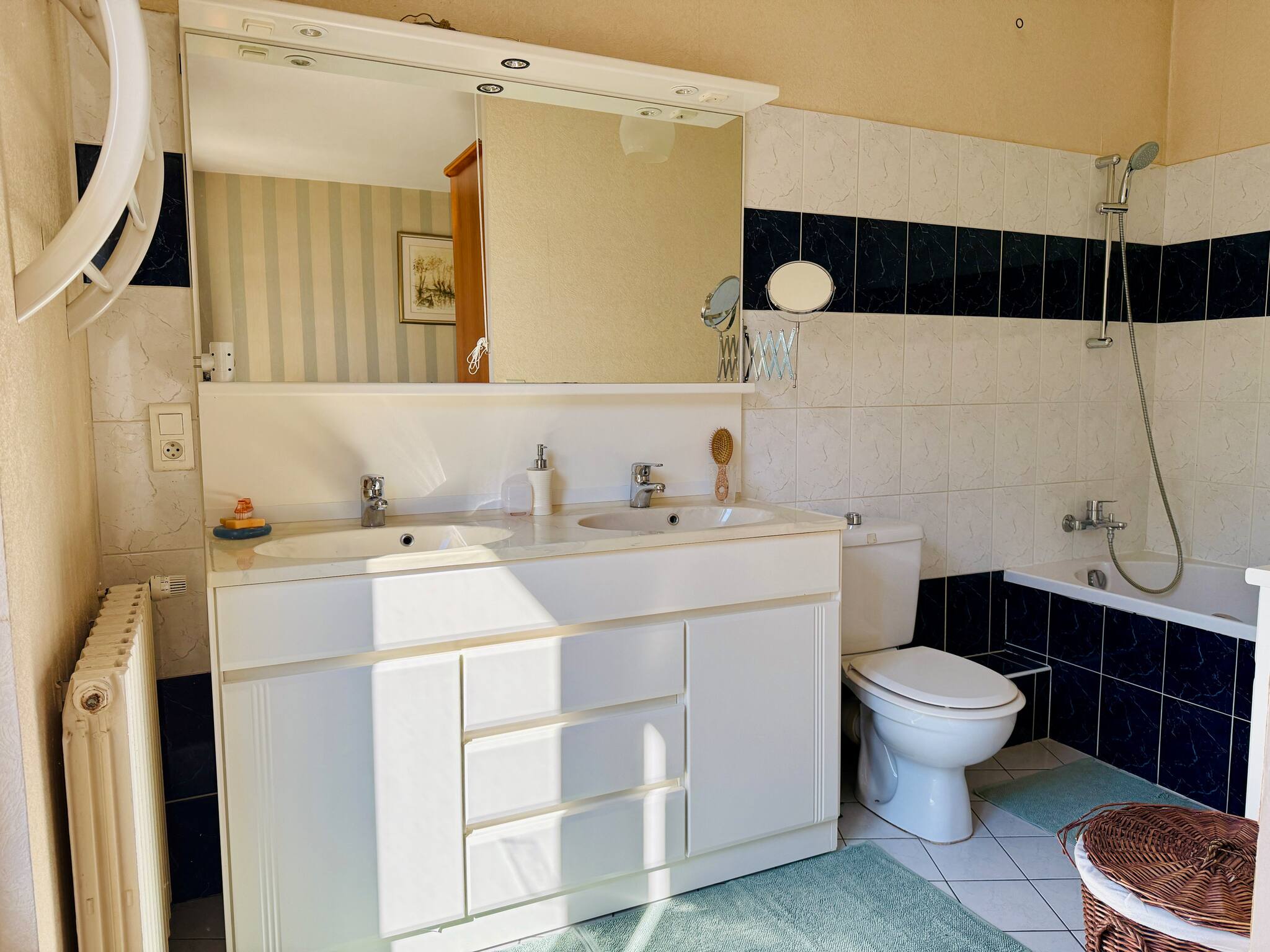 The villa is therefore composed of 3 washrooms + 1 bathroom with a bathtub as well as 2 toilets (toilet with a hand basin on the ground floor and toilet upstairs).
