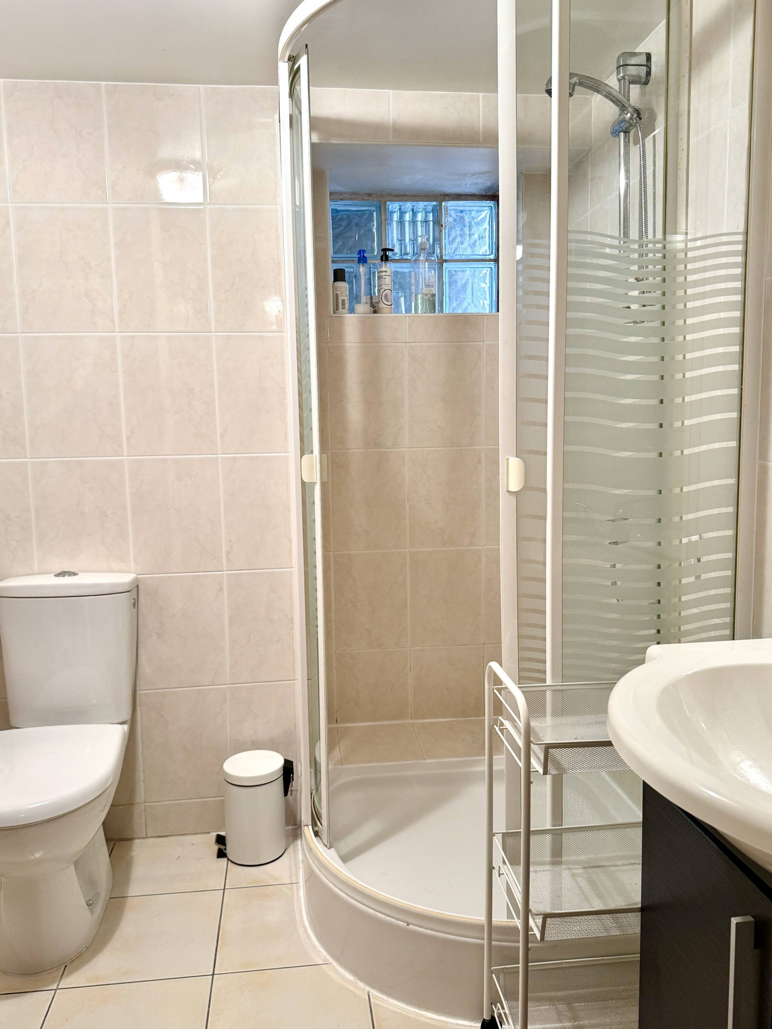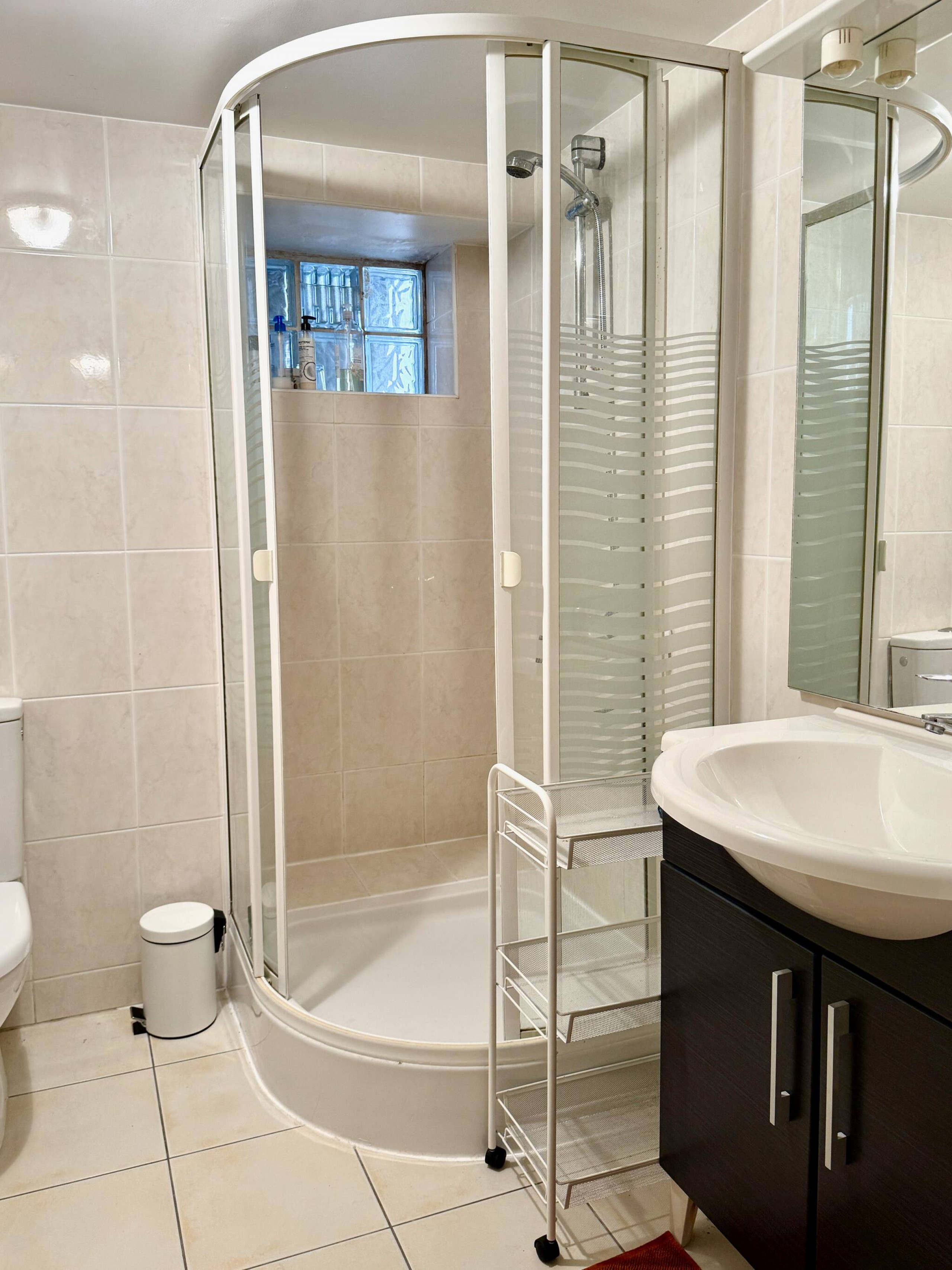 • On the ground floor: a large bedroom with a double bed (180x190), close to a bathroom with a laundry room.