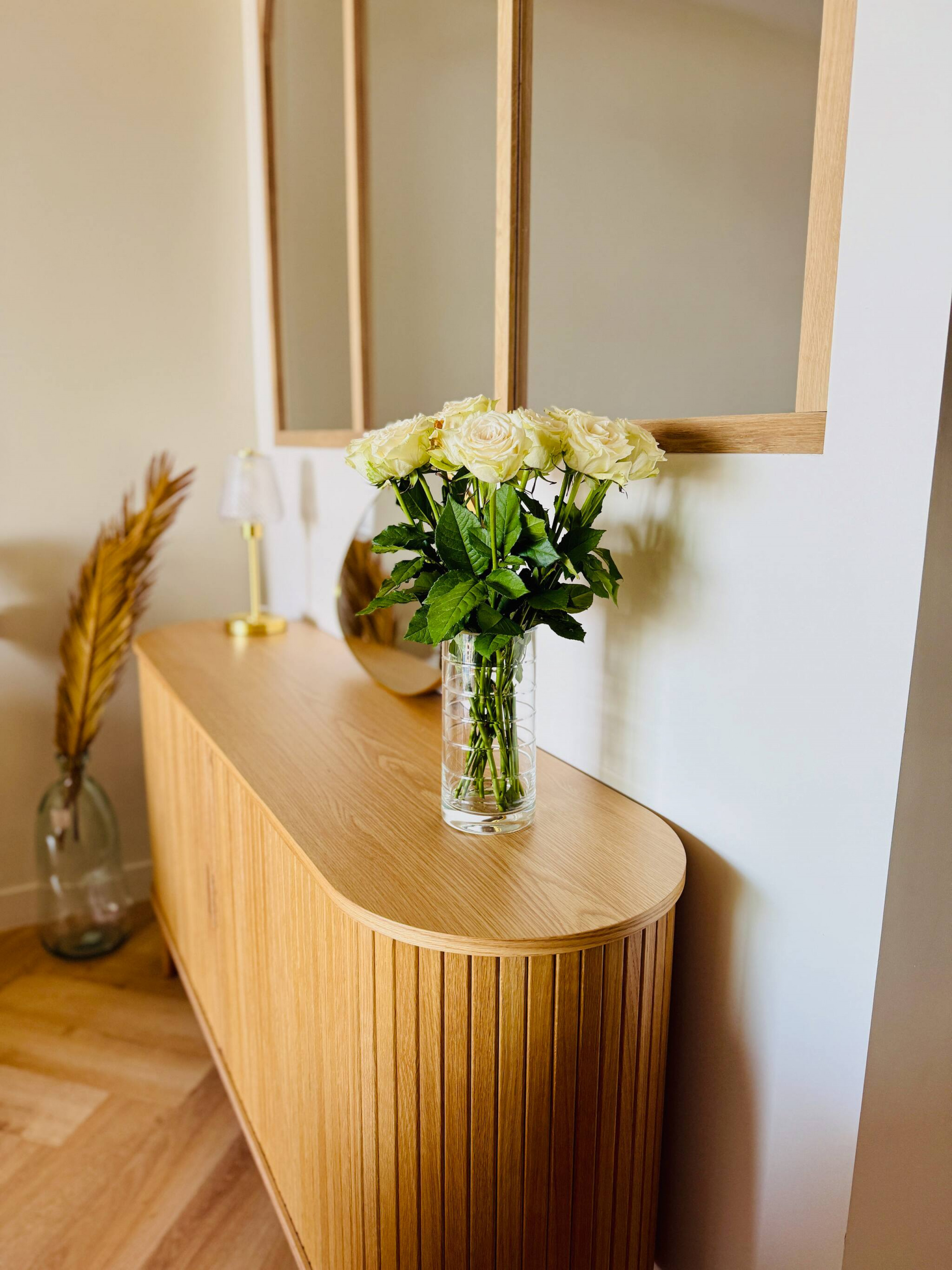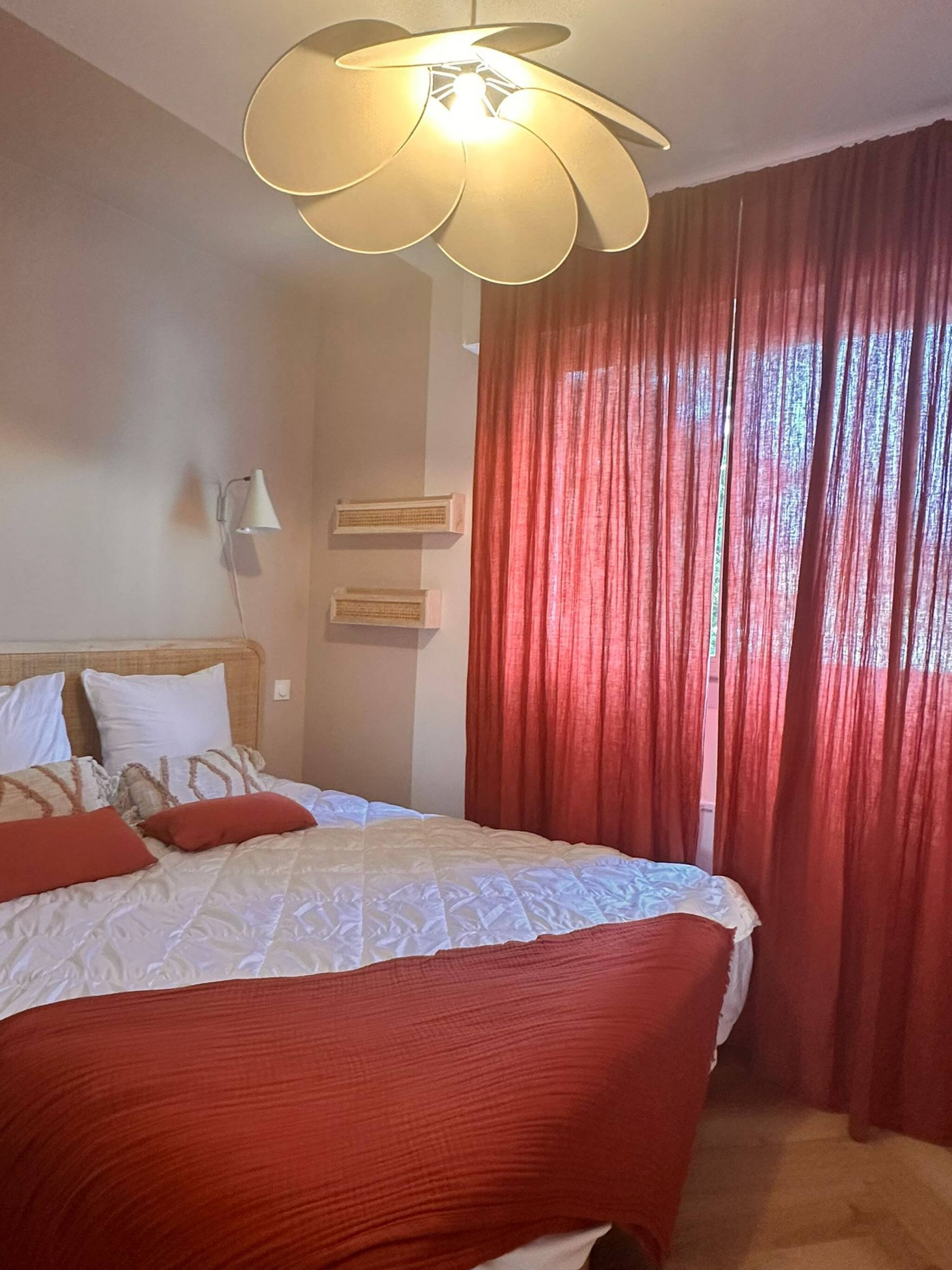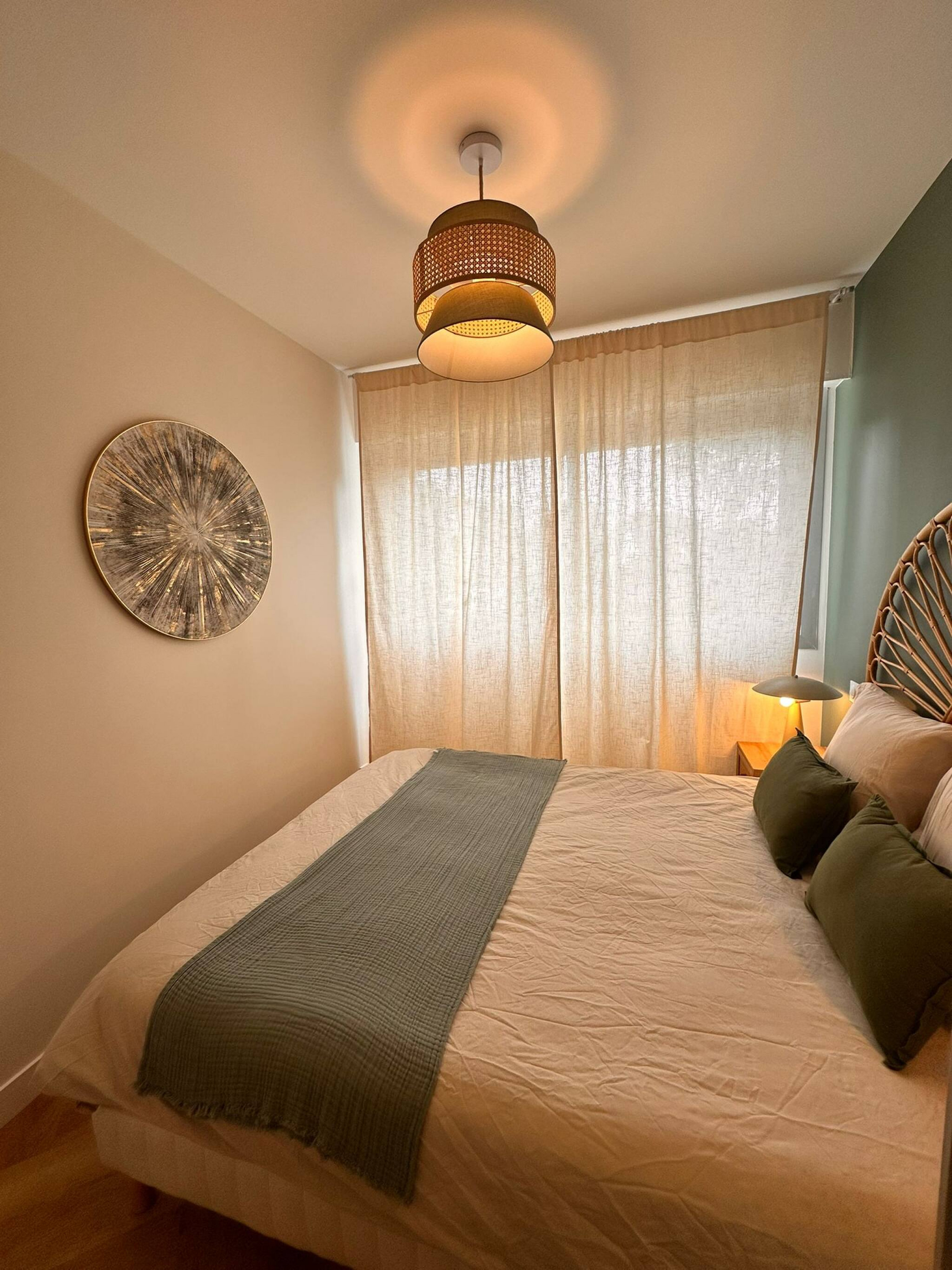 L'appartement dispose de deux chambres pour vous accueillir, une salle de bain, une cuisine ouverte sur le salon.