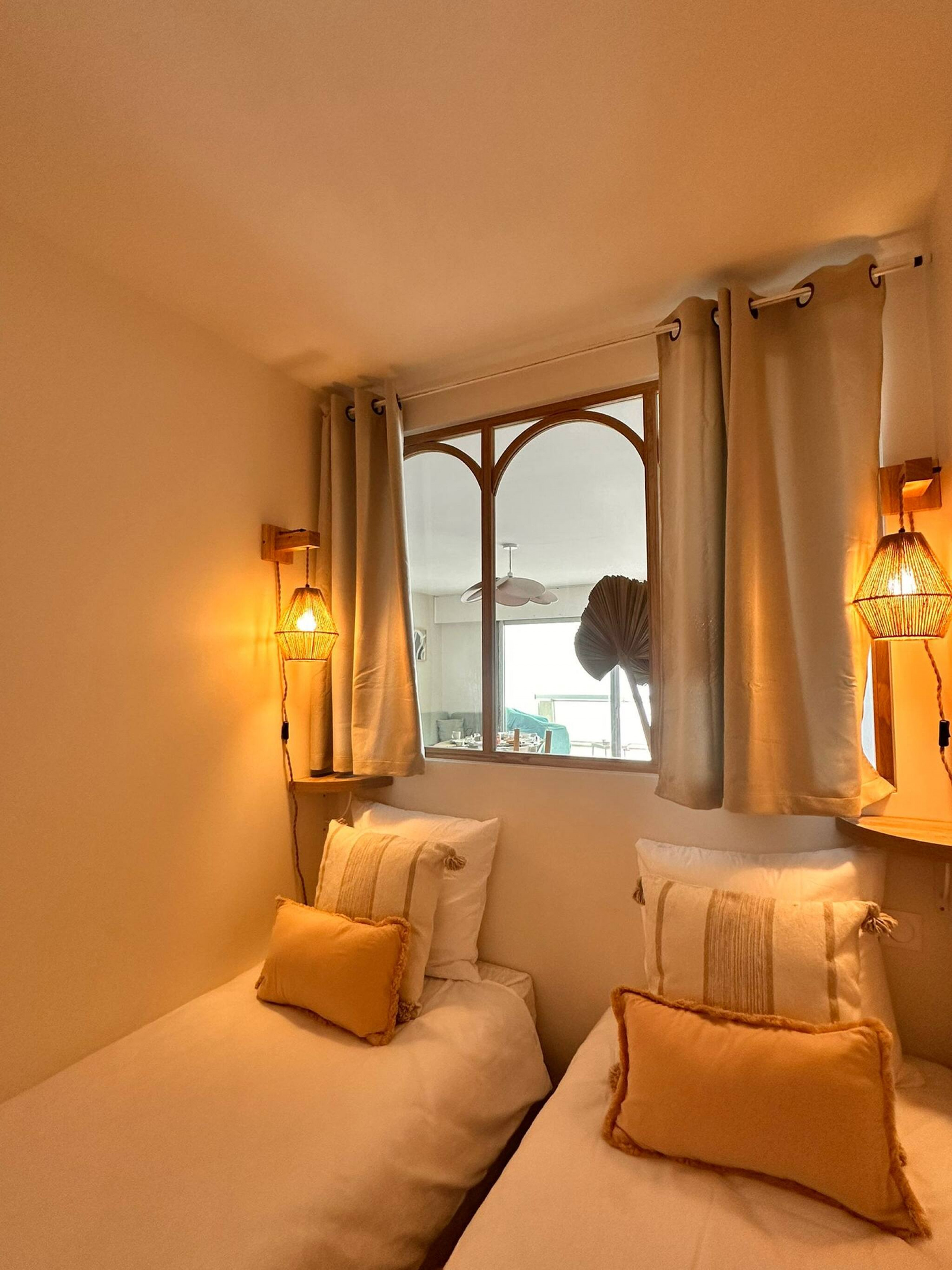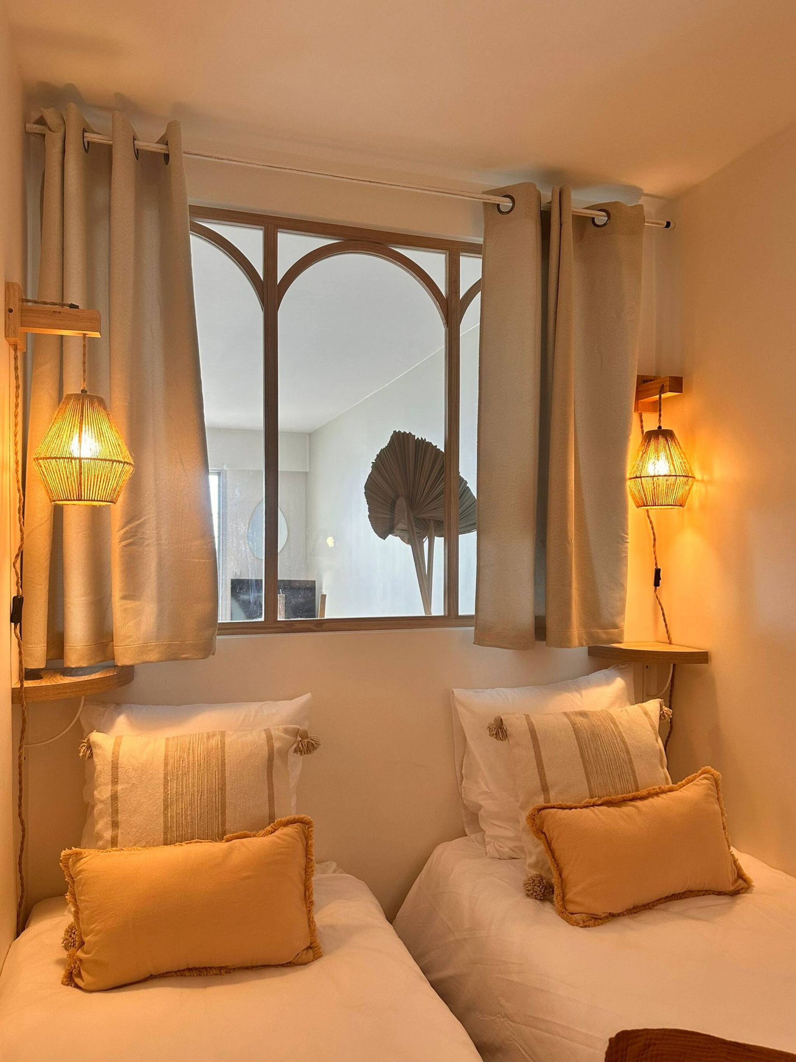 Chambre 3 : chambre modulable avec deux lits simples (80x190 cm) pouvant être rapprochés pour former un lit double (160x190 cm).