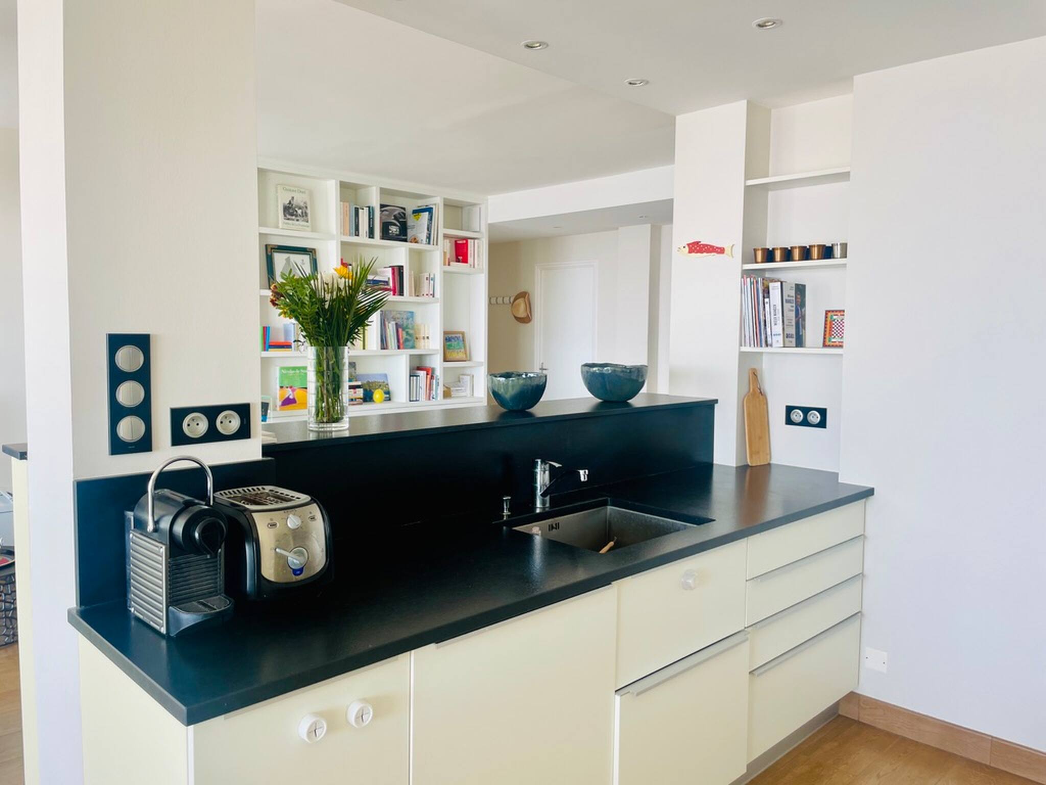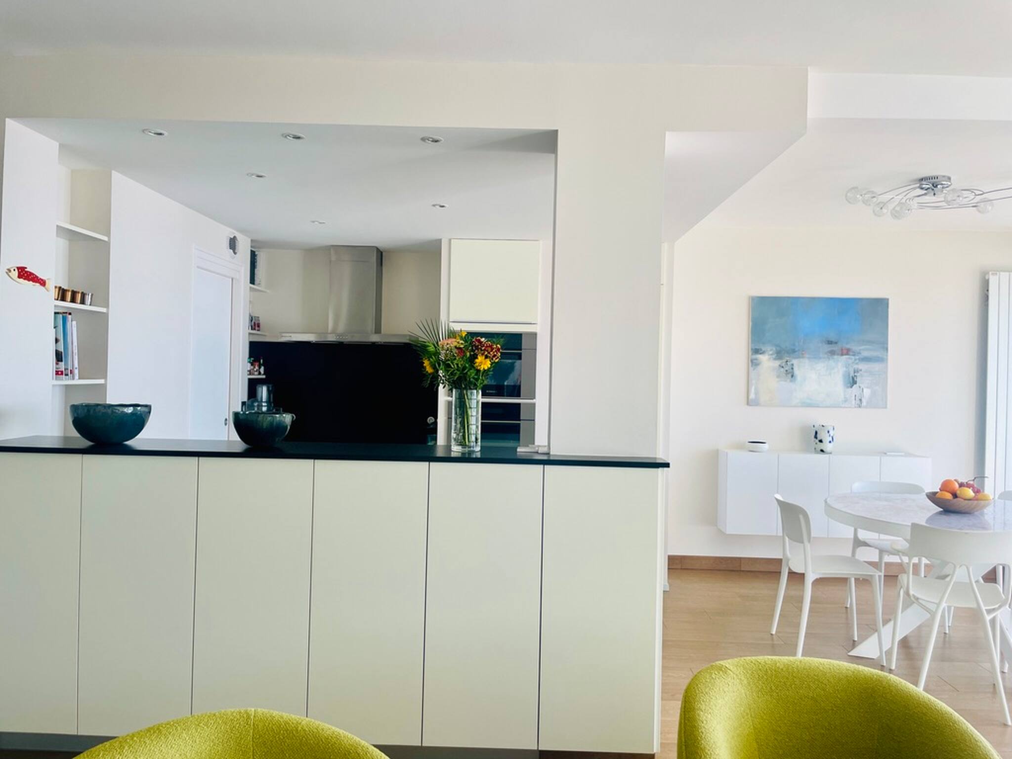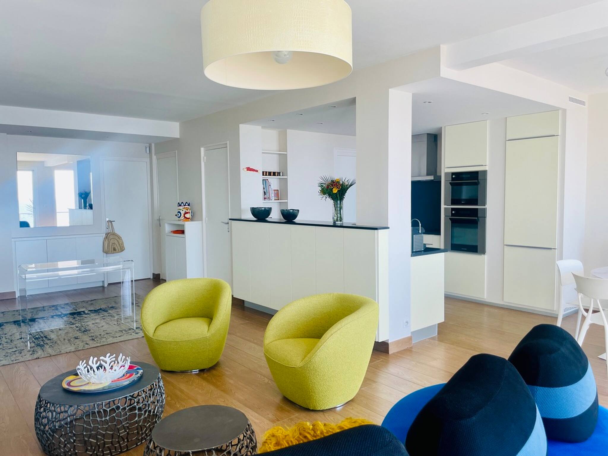 L'appartement dispose de deux chambres pour vous accueillir, une salle de bain, une cuisine ouverte sur le salon.