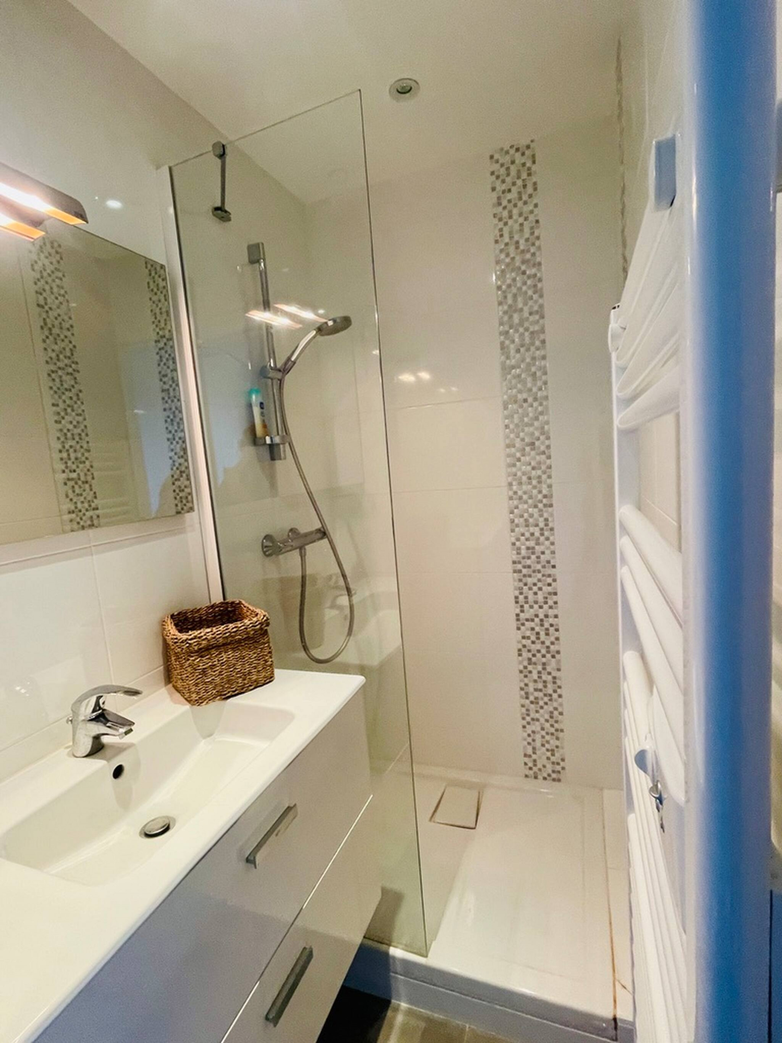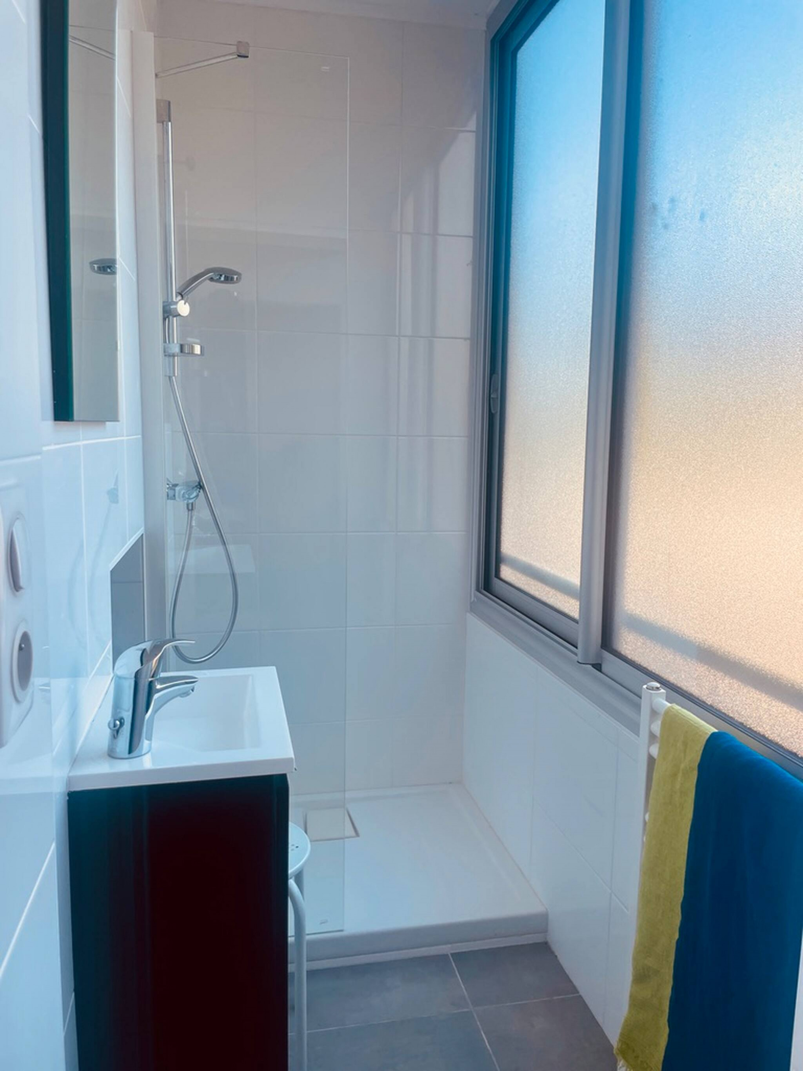Une salle d’eau avec douche entièrement rénovée