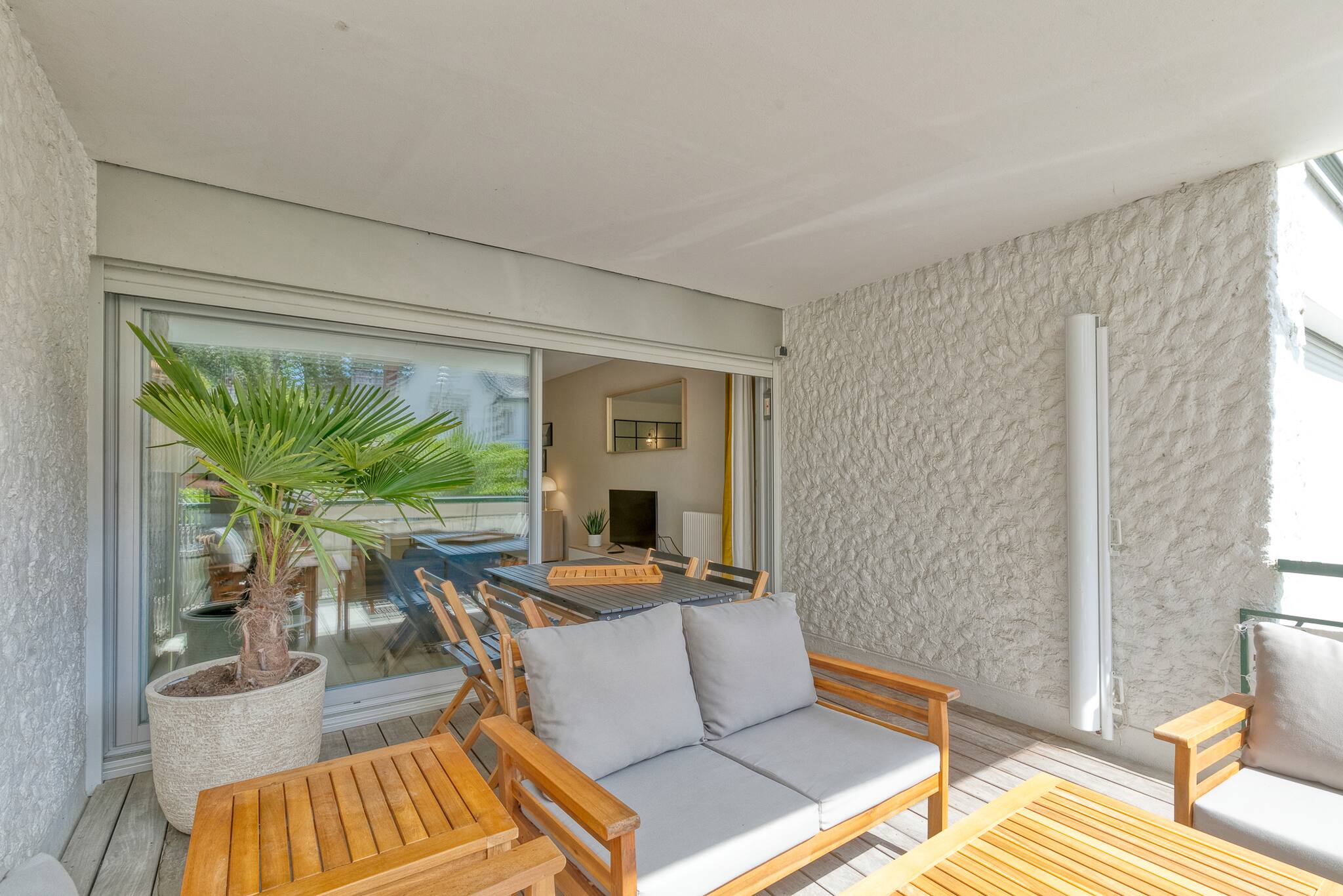 L’appartement est traversant et dispose de 2 terrasses, une côté salon et l'autre côté chambres.