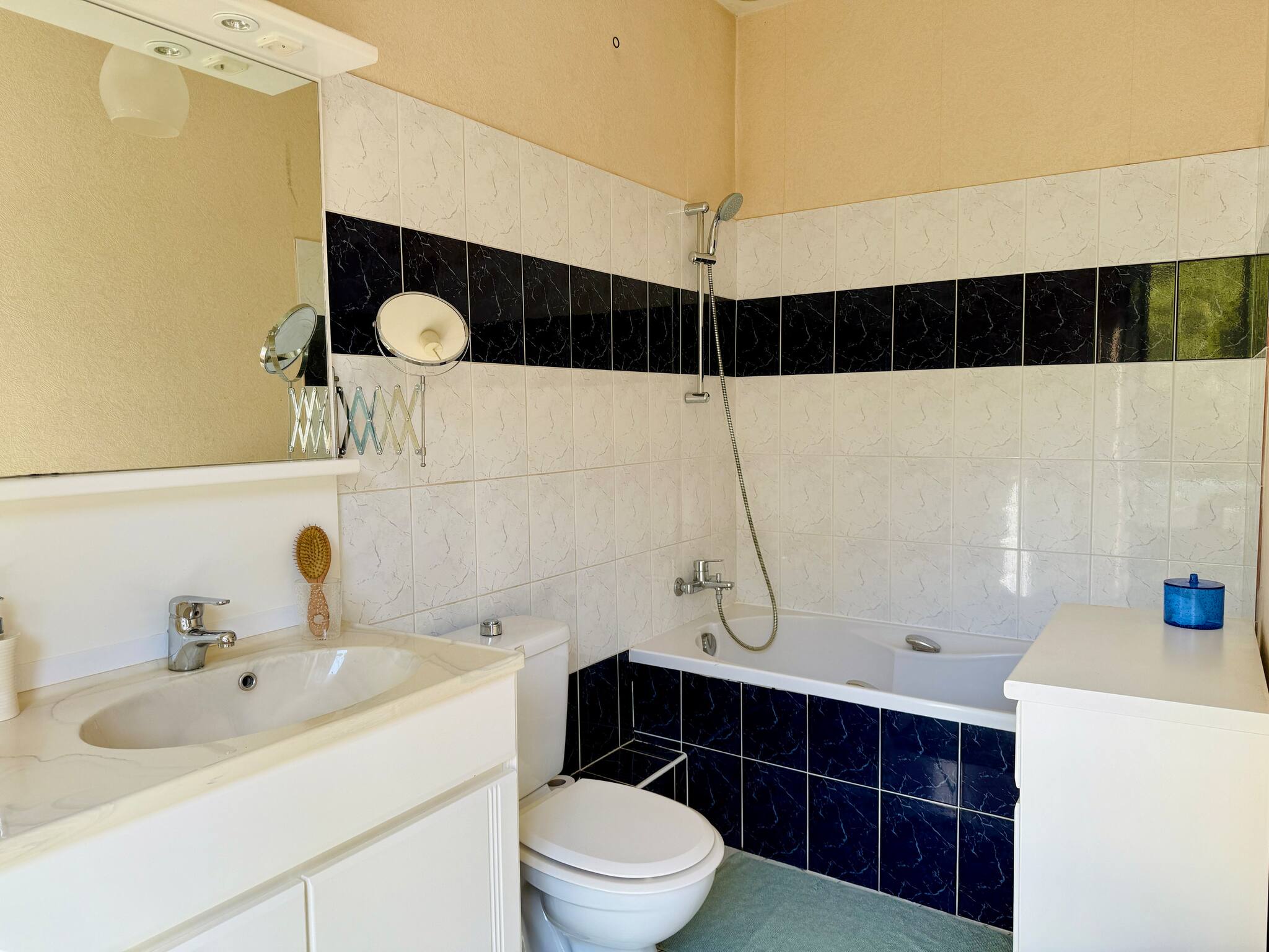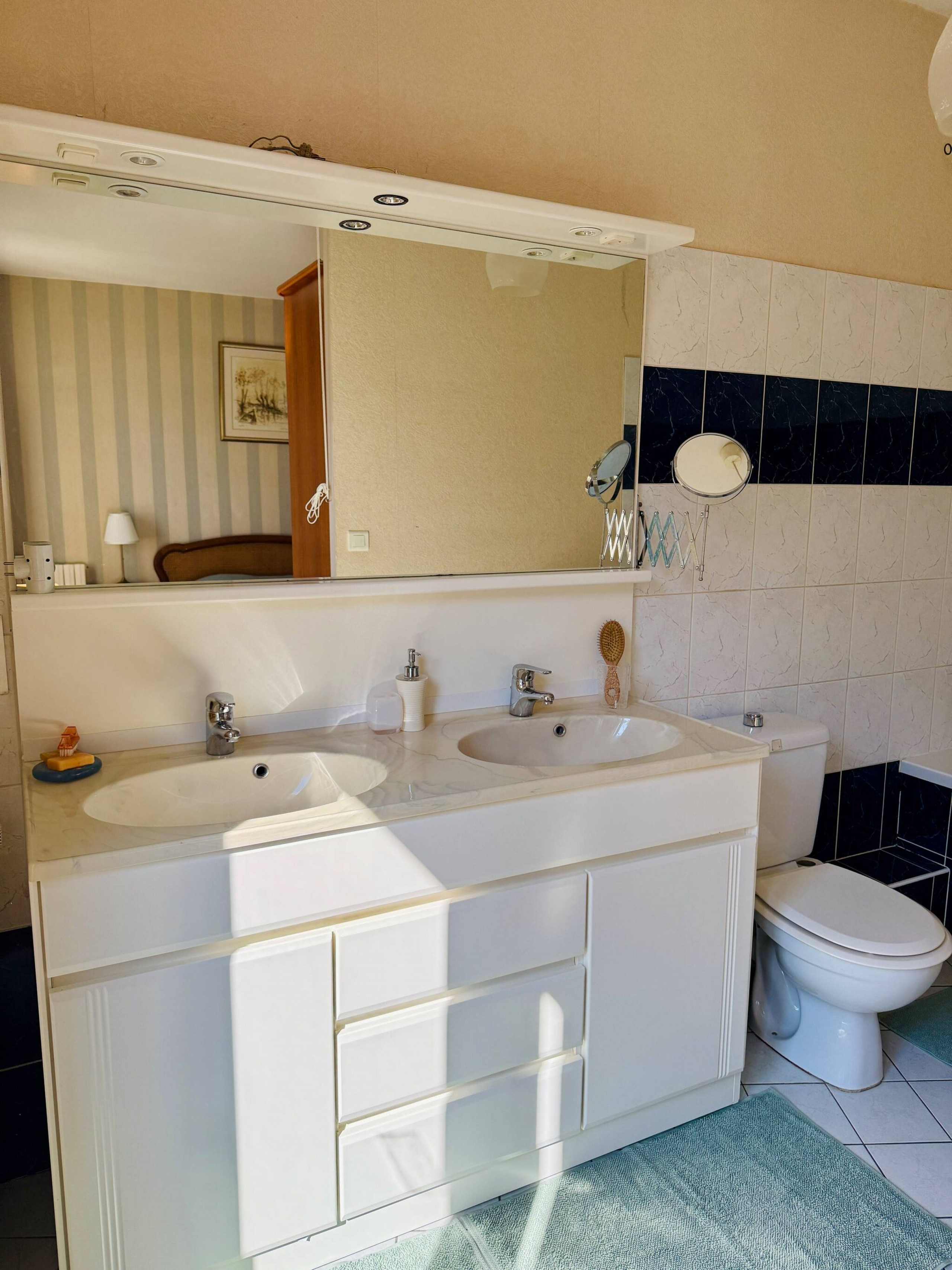 La villa est donc composée de 3 salles d’eau + 1 salle de bain avec baignoire ainsi que 2 WC (WC avec lave-main au RDC et WC à l'étage).