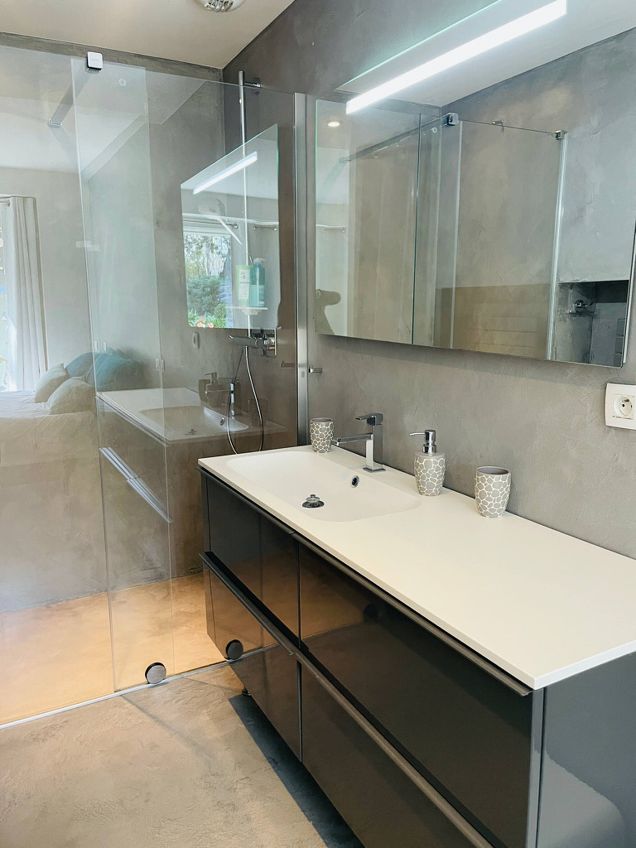 Chambre 1 - La suite parentale : lit 160x200 avec salle de bain attenante (douche)