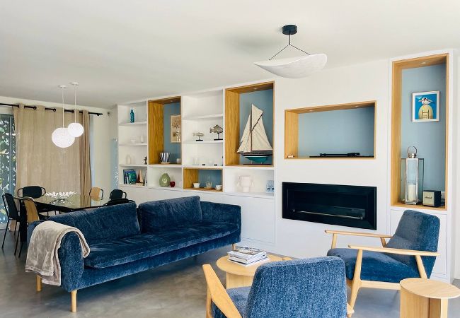 La villa est composée d'un grand séjour traversant très lumineux (salon et salle à manger avec cuisine ouverte) donnant sur une grande terrasse exposée sud-ouest.